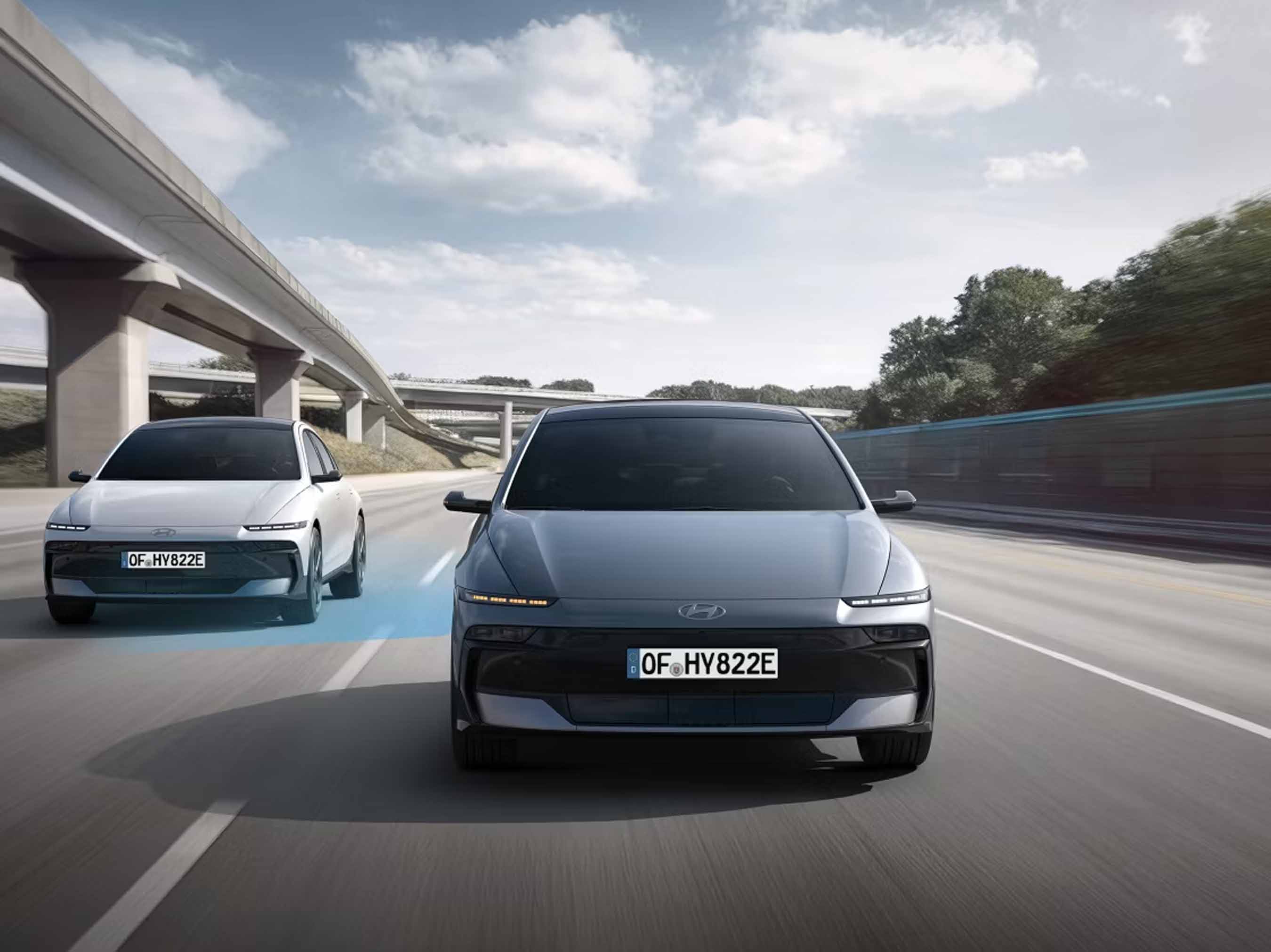Grâce au Highway Driving Assist 2, l’IONIQ 6 propose une conduite autonome de niveau 2 – il régule automatiquement la vitesse et la distance, et vous assiste lors des changements de voie.