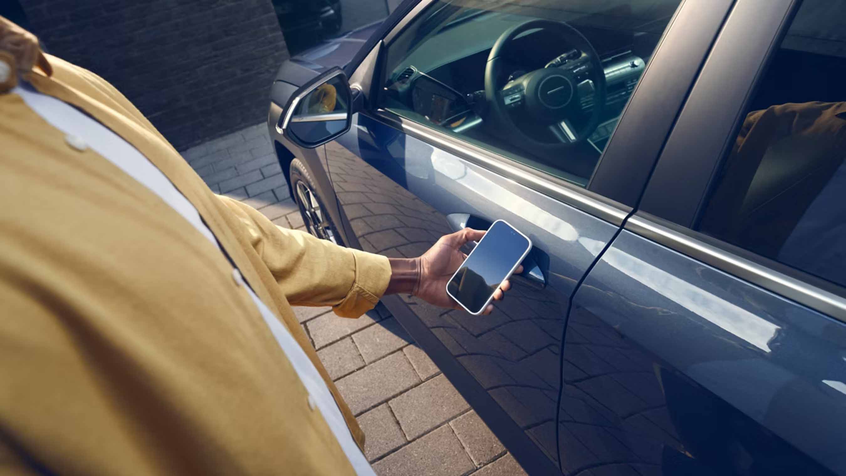 Profite de la connectivité moderne et du sentiment agréable d'être assisté par de nombreux systèmes de sécurité et d'aide à la conduite. KONA est l'un des premiers modèles Hyundai à proposer des mises à jour du logiciel du véhicule et une clé de voiture numérique.